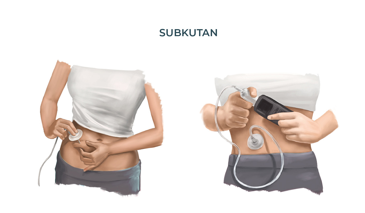 Anstelle der intravenösen Gabe von Immunglobulinen kann alternativ auch auf die subkutane Anwendung umgestellt werden. Das bedeutet, dass die Patienten nach eingehender Schulung die Infusion selbst zu Hause oder unterwegs mit einer kleinen Pumpe vornehmen können. Die subkutane Infusionstechnik wird üblicherweise in circa drei Trainingseinheiten in einer Klinik oder einer Praxis erlernt, bevor man sie selbst ausführen kann. Dabei ist es zusätzlich hilfreich, wenn ein Familienmitglied oder eine Betreuungsperson die Heimselbsttherapie unterstützt. Die Infusion unter die Haut erfolgt meist wöchentlich, teilweise auch zweiwöchentlich. Die Dauer der Infusion ist von der Dosis abhängig und wird mit dem Arzt festgelegt. In der Regel liegt die Infusionsdauer bei 1-2 Stunden bei wöchentlicher Gabe. Die Patienten sind bei diesem Verfahren zeitlich unabhängiger und flexibler, gerade auch wenn es um die Vereinbarkeit von Therapie und Beruf geht.